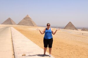 The pyramids in Egypt are smaller than they look and they 3 pyramids are very spread out – not side by side as they look!